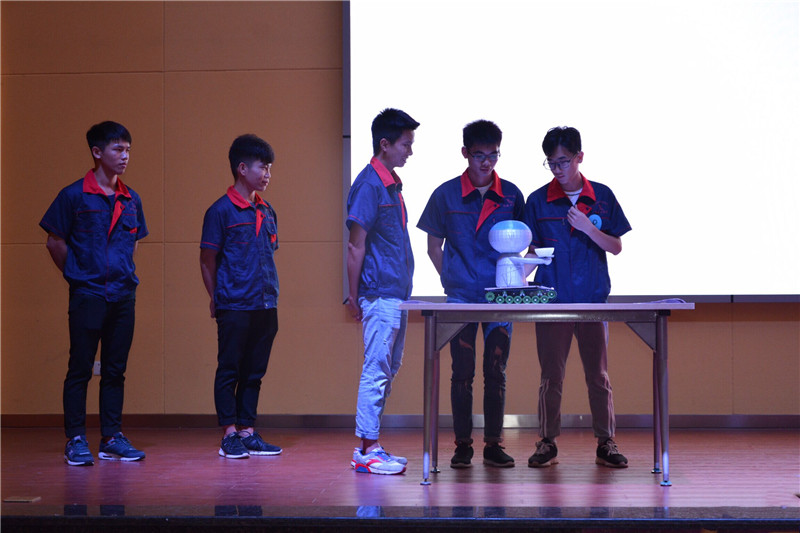 本次大賽是機電工程系主打的系品牌活動,此次共有10支參賽隊伍進入決賽的比拼,各參賽隊伍通過計算機編程、工程設計、機械組裝,并結合自己的日常觀察積累,進行了長達一個多月的積極創(chuàng)作。大賽在考核學生對于機器人創(chuàng)新創(chuàng)意應用等基本技能基礎上重點突出社會所需專業(yè)技能及新技術應用,體現創(chuàng)意創(chuàng)新成果和科學探究的綜合性相結合原則,突出職業(yè)能力素養(yǎng)考核及工匠精神要求。經過激烈角逐,來自信息工程系、機電工程系組合成的“創(chuàng)躍團隊”奪得桂冠,他們的作品“自平衡自行車”運用UG建模、3D打印、摩擦輪技術成功創(chuàng)作出在無觸摸的情況下能通過手機控制自由活動的自行車。
